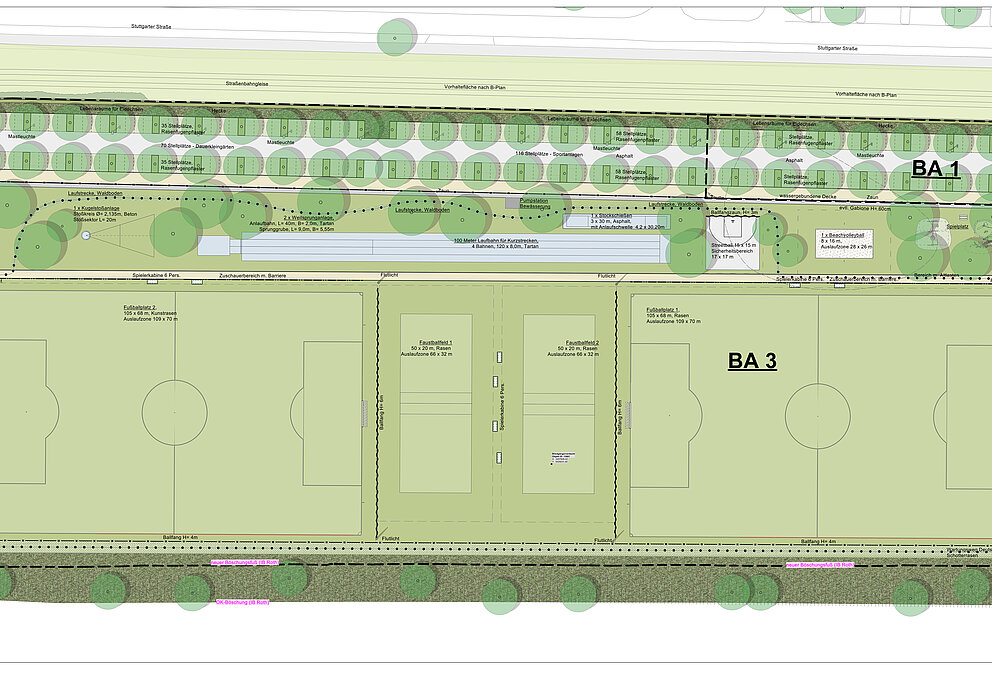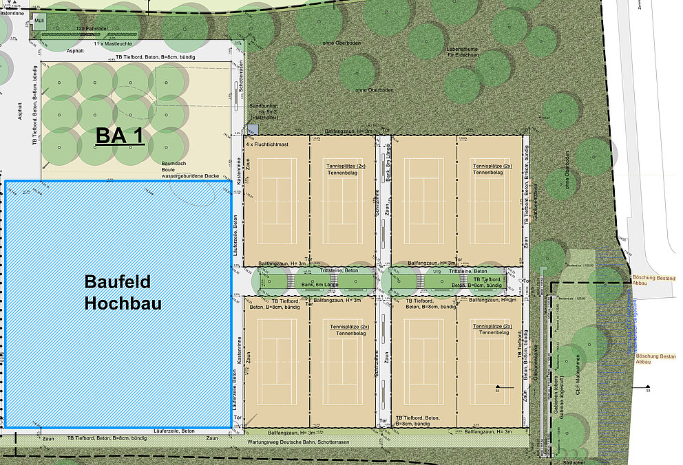 Vielleicht schafft es dann auch ein Angreifer (Julian oder Volker?) den Ball auf die Bahnlinie zu bringen, bisher hat das nur unsere Abwehr geschafft ;-) Der Gesamtplan 1,59 MB (PDF) des Areals ist als Download verfügbar.